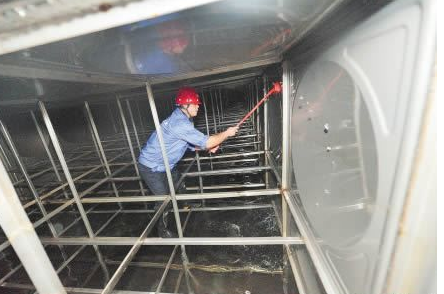 (2)、除杂物和清池时,先用铁铲铲出池内泥砂及各种沉积物,然后用扫把或尼龙刷从水池(箱)的顶部--四周墙壁--水池(箱)底顺序,依次反复刷洗。刷洗完毕用高压水枪整体冲洗一遍,排出污水。