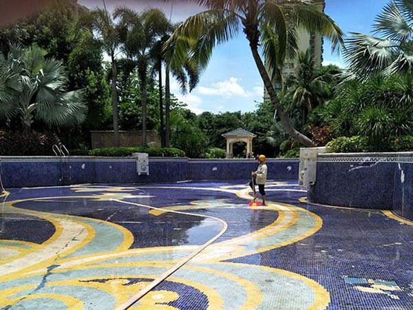 第五步:这是游泳池净化的最后一步,那就是,游泳池吸污,絮凝后需要使用手动吸污机吸污。如果第四步使用的是科瑞德澄清剂,则可以使用全自动吸污机进行吸污。