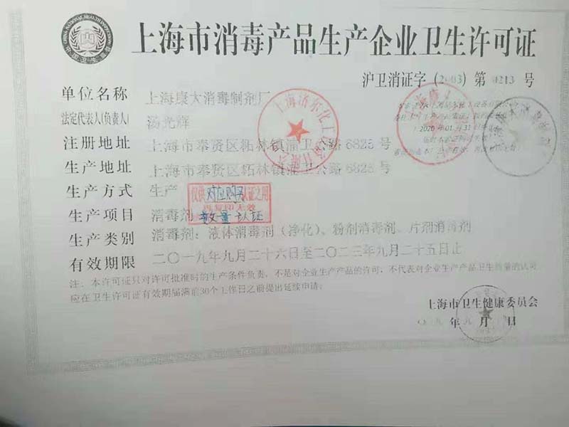 消毒产品卫生许可证